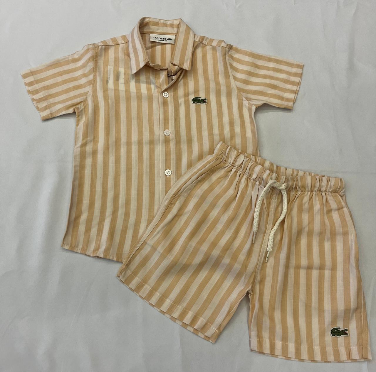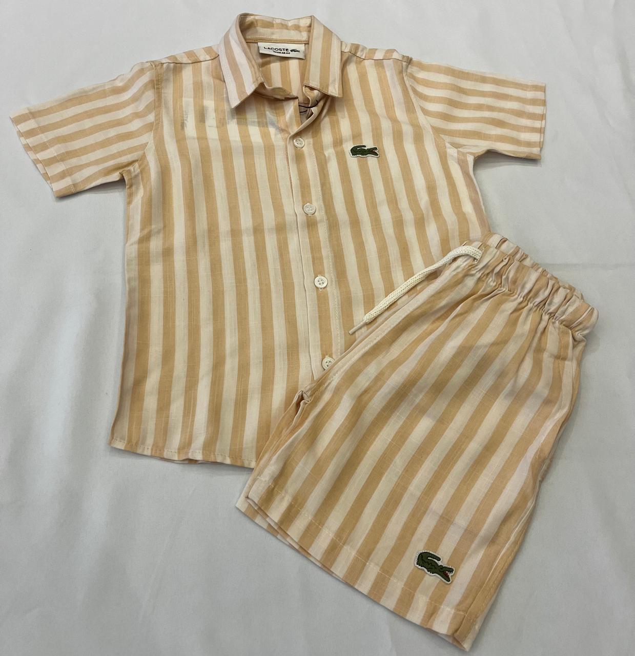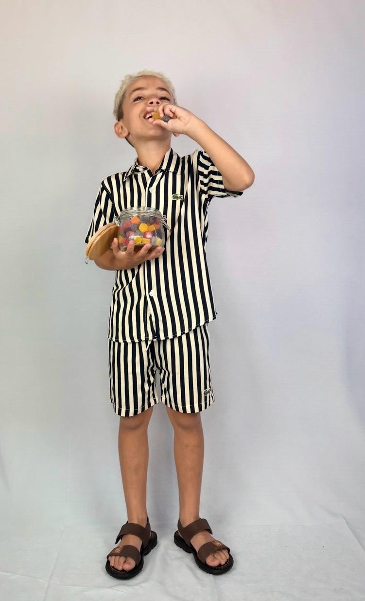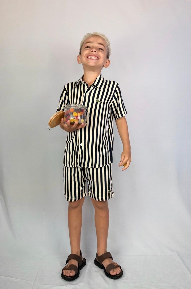 Possui listras verticais em tons suaves, trazendo um visual clássico e elegante.A camisa tem modelagem confortável, fechamento frontal por botões e acabamento delicado, garantindo charme e praticidade. A bermuda conta com cós em elástico, proporcionando melhor ajuste ao corpo e liberdade de movimentos para os pequenos.